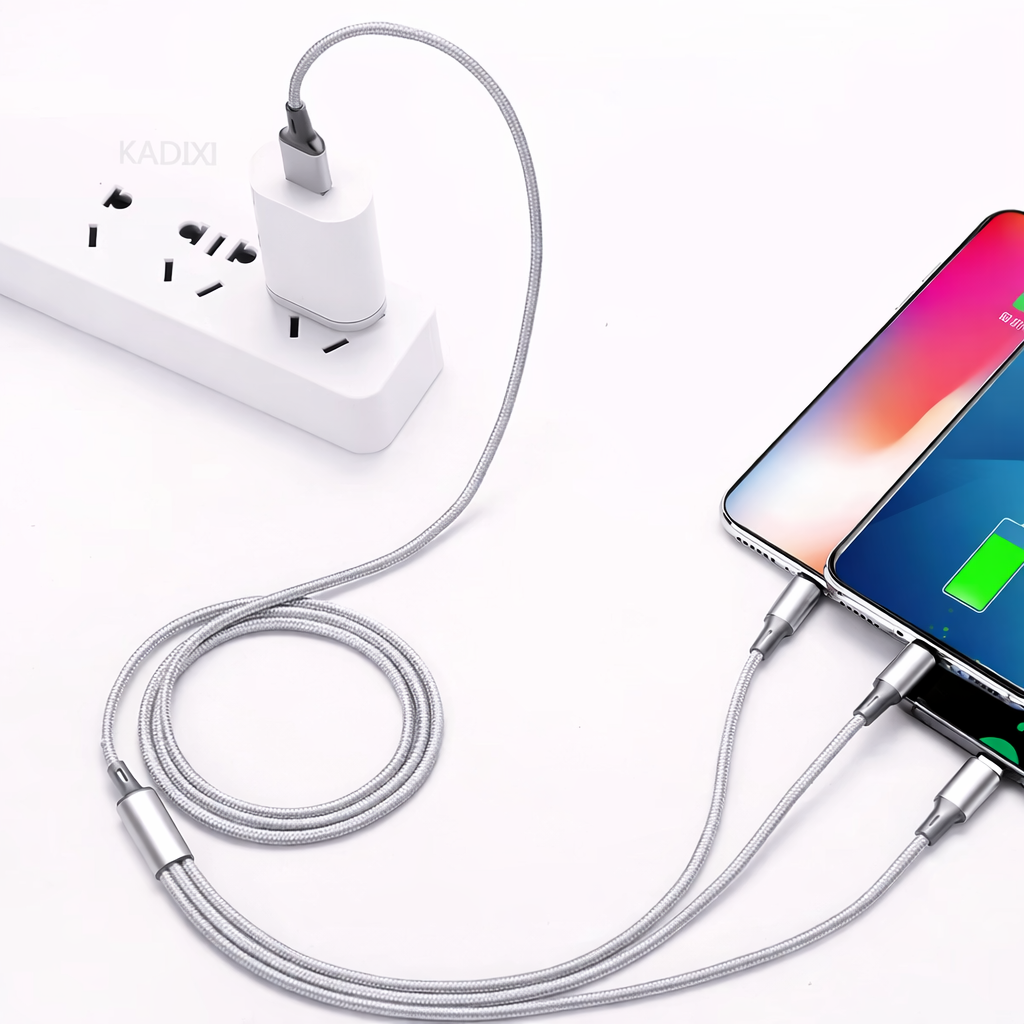 3 different head in 1 USB Fast Charging Cable cord   Specification: Length: 1.2m Function: For charging(Not for data transmission)... Read more Read more