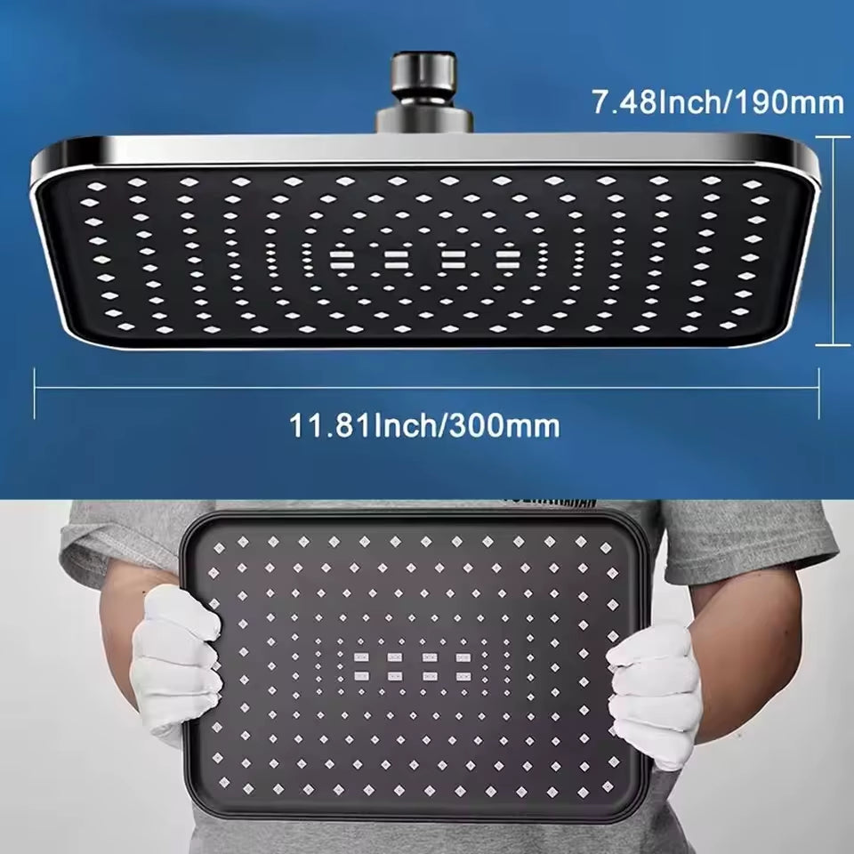 30Cm Large Size High Pressure Overhead Rain Shower Head Flow, 360° Rotation & Water Saving
