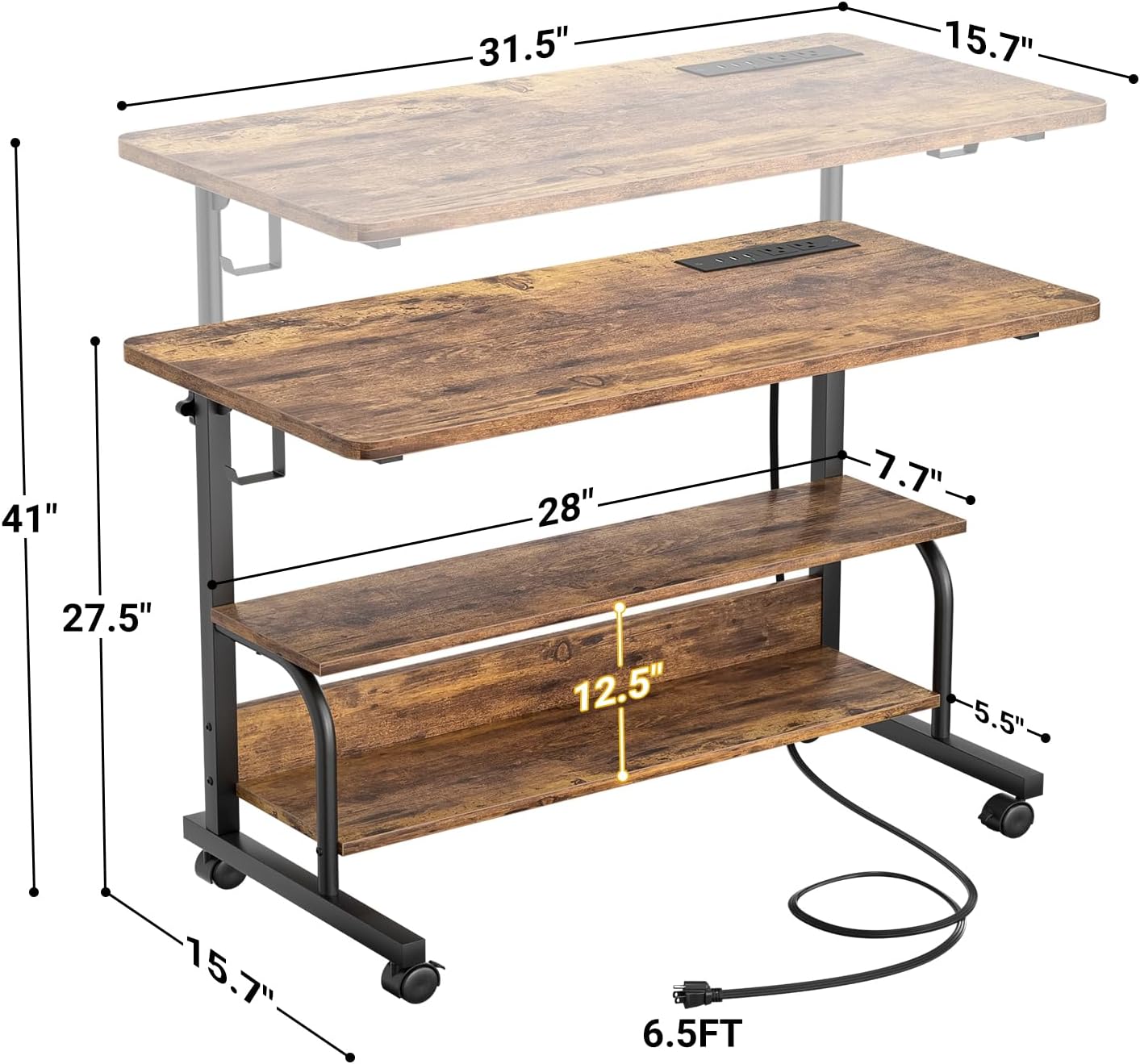 • Height Adjustable Standing Desk with Power Outlets: Besiost rolling standing desk equipped with 2 AC outlets and 3 USB ports and 6.5ft long power supply cord provide the charging convenience for phone, laptops, AirPods, etc. Velcro tape make your device's cords tidy.