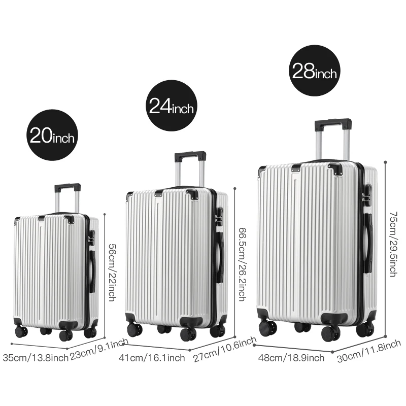 3Pcs Spacious ,Durable and light weight Luggage set 20/24/28 with Corner Protectors & 360 Spinner Wheels