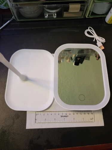 Item is as described. It is a bit flimsy and light weight. That could be a pro or con. It is difficult to connect the rod to the back of the mirror. I did need to file down a bit of plastic to enable the ball to fit into the socket. The size is good not too big not too small. I reccomend looking at the dimensions because i can imagine someone expecting bigger mirror. No issue with shipping. would recommend.