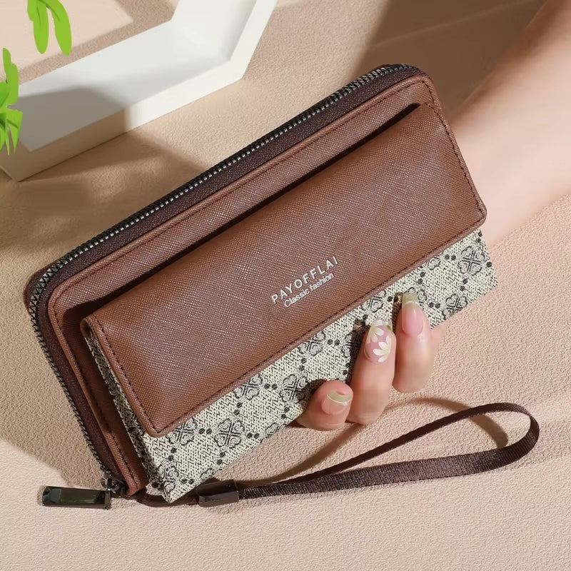 Classic women's Faux Leather spacious Wallet, Double Layer with Snap Closure, Zippered Card Holder