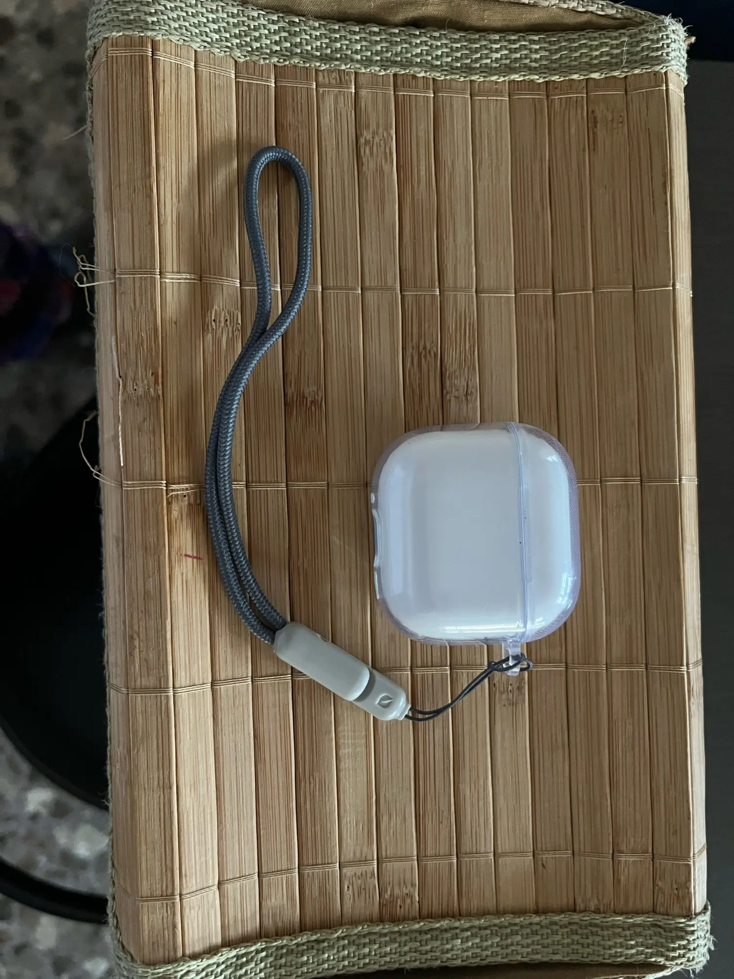 I saw mixed reviews on cases that were $30 that left damage to the airpods, i came across this with good reviews and i am glad i did. No adhesive, but sticks on the case with a textured finish. Very clean looking with a solid, strong feeling