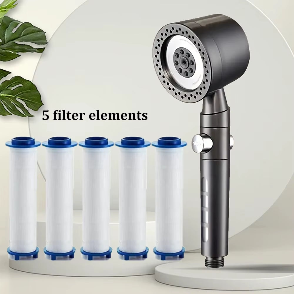High Pressure Water Saving Filter Shower Head with 5 pressure Modes- set with 5 filter or 1.5M extension