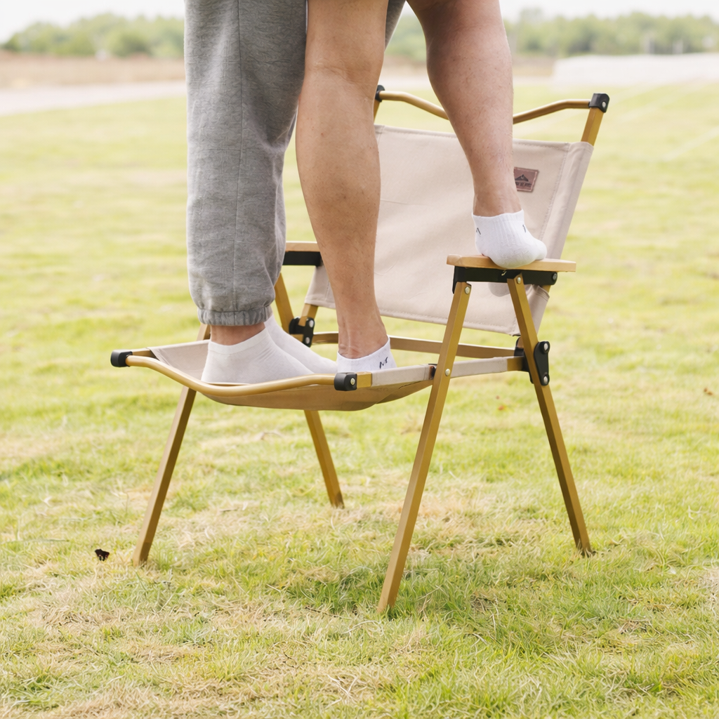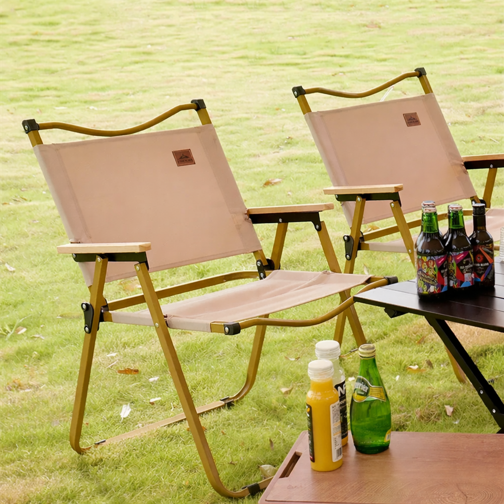 Lightweight and high quality Khaki Camping Outdoor Chairs, Aluminum Alloy and Wood Grain-4pcs set