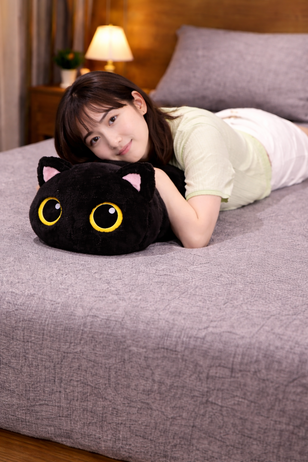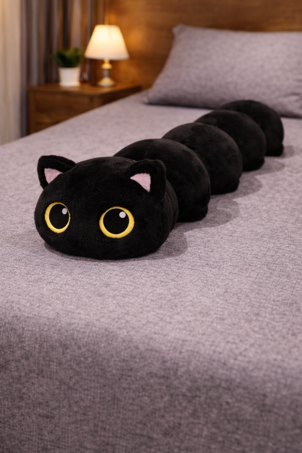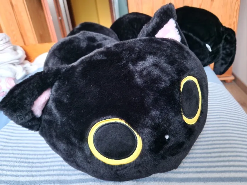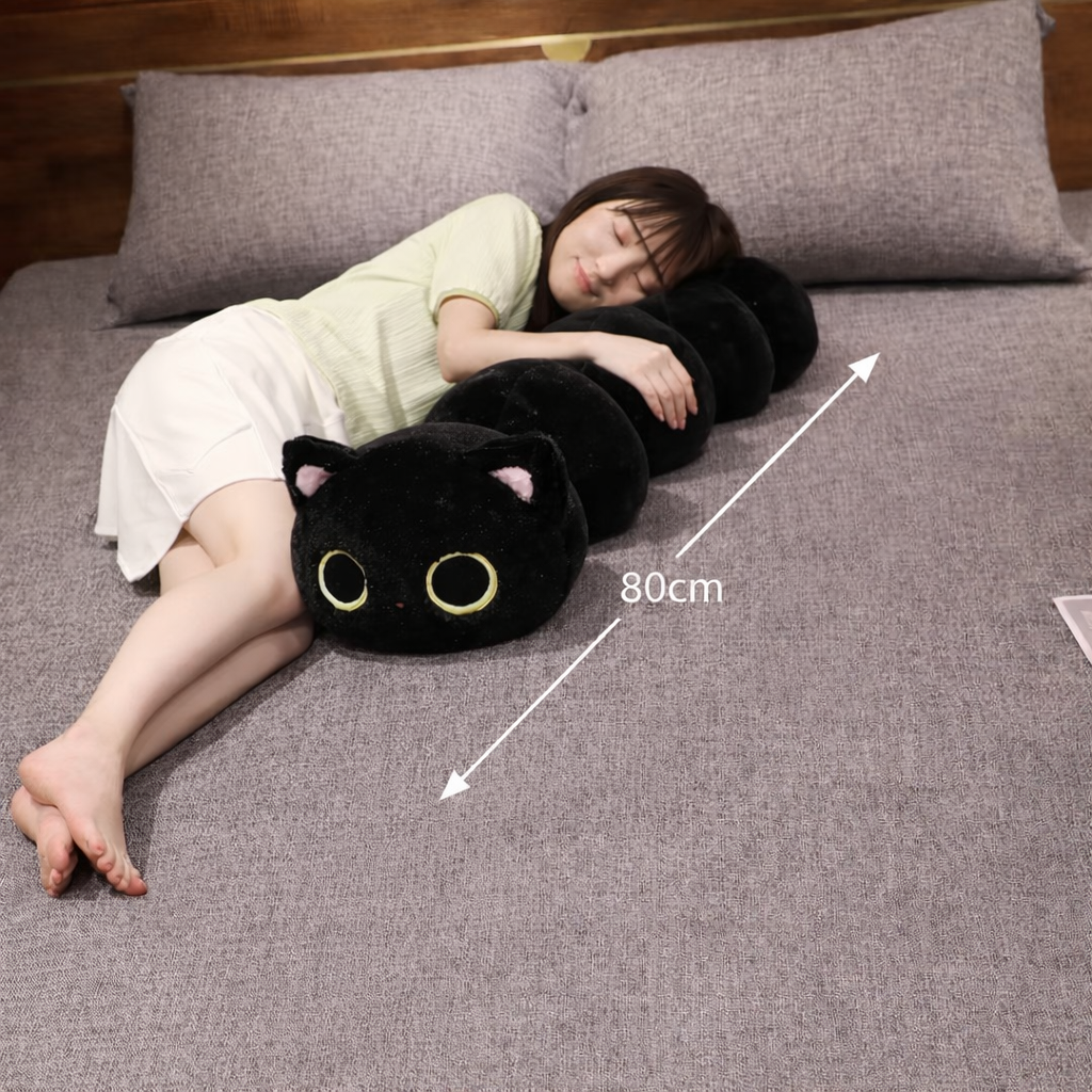 long cute Kawaii Black Cat Soft sleeping bed Plush, for sleeping & bed decor - 80cm