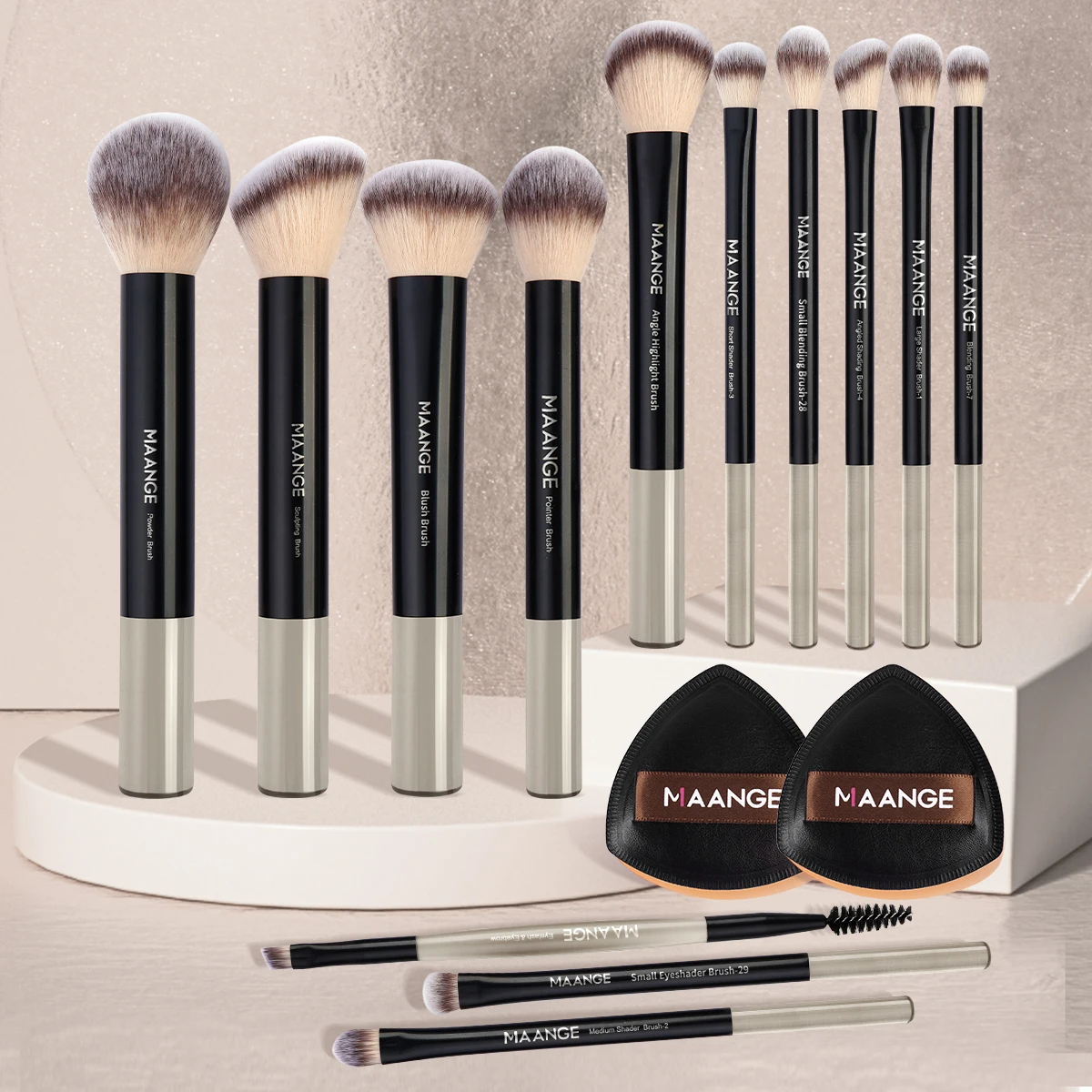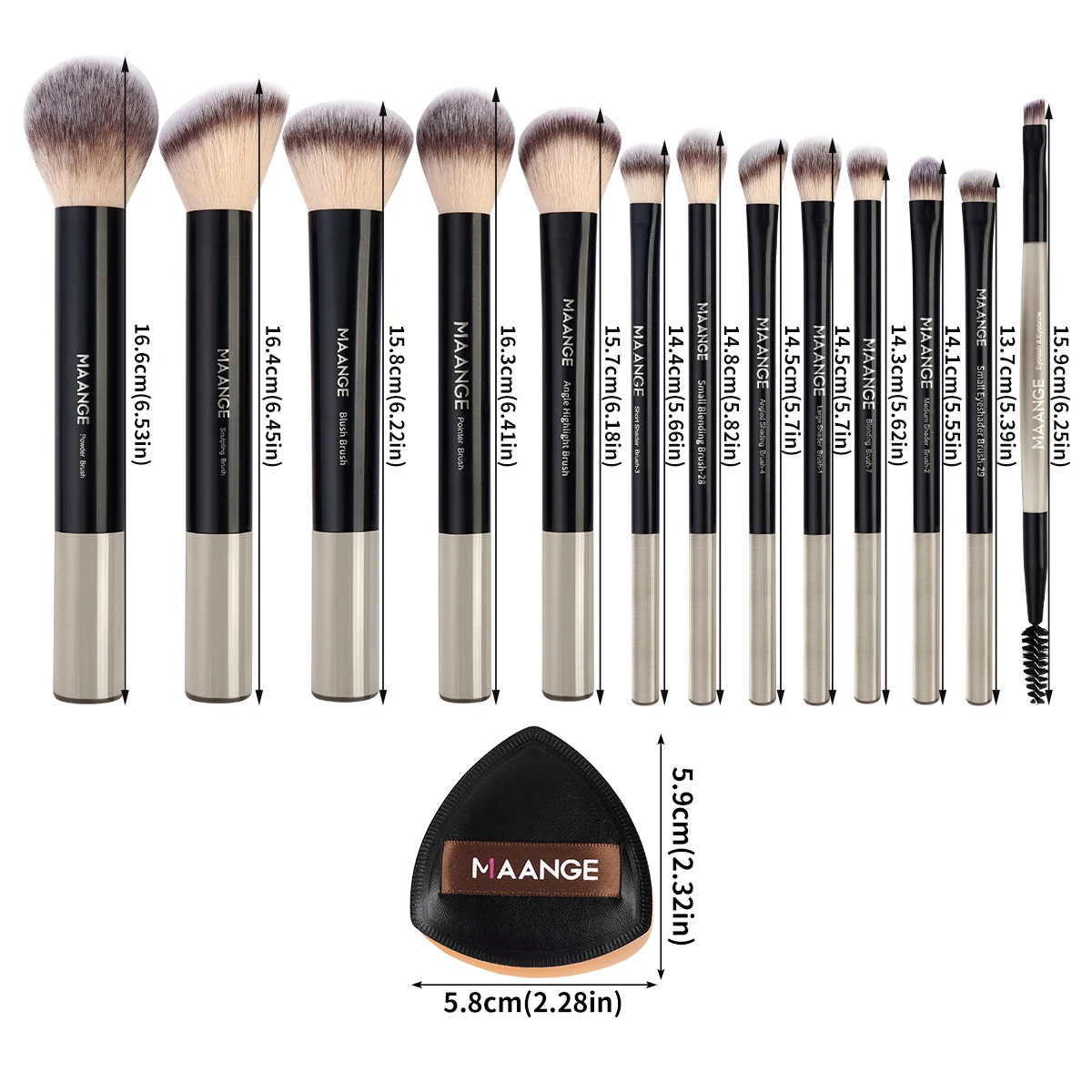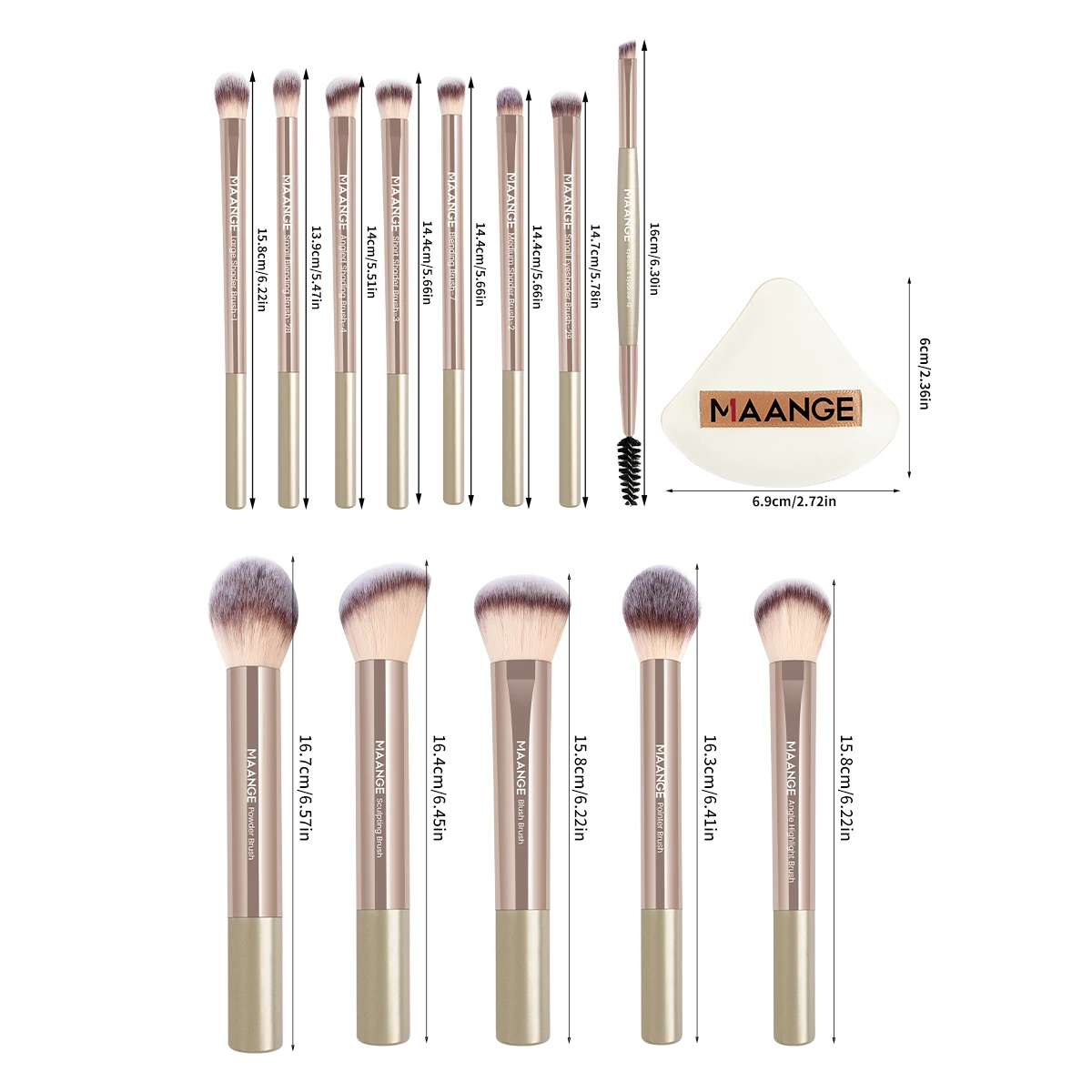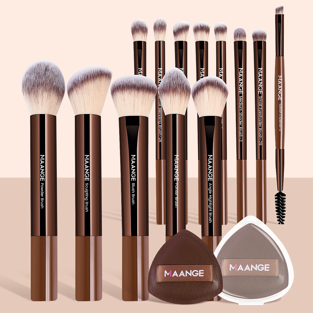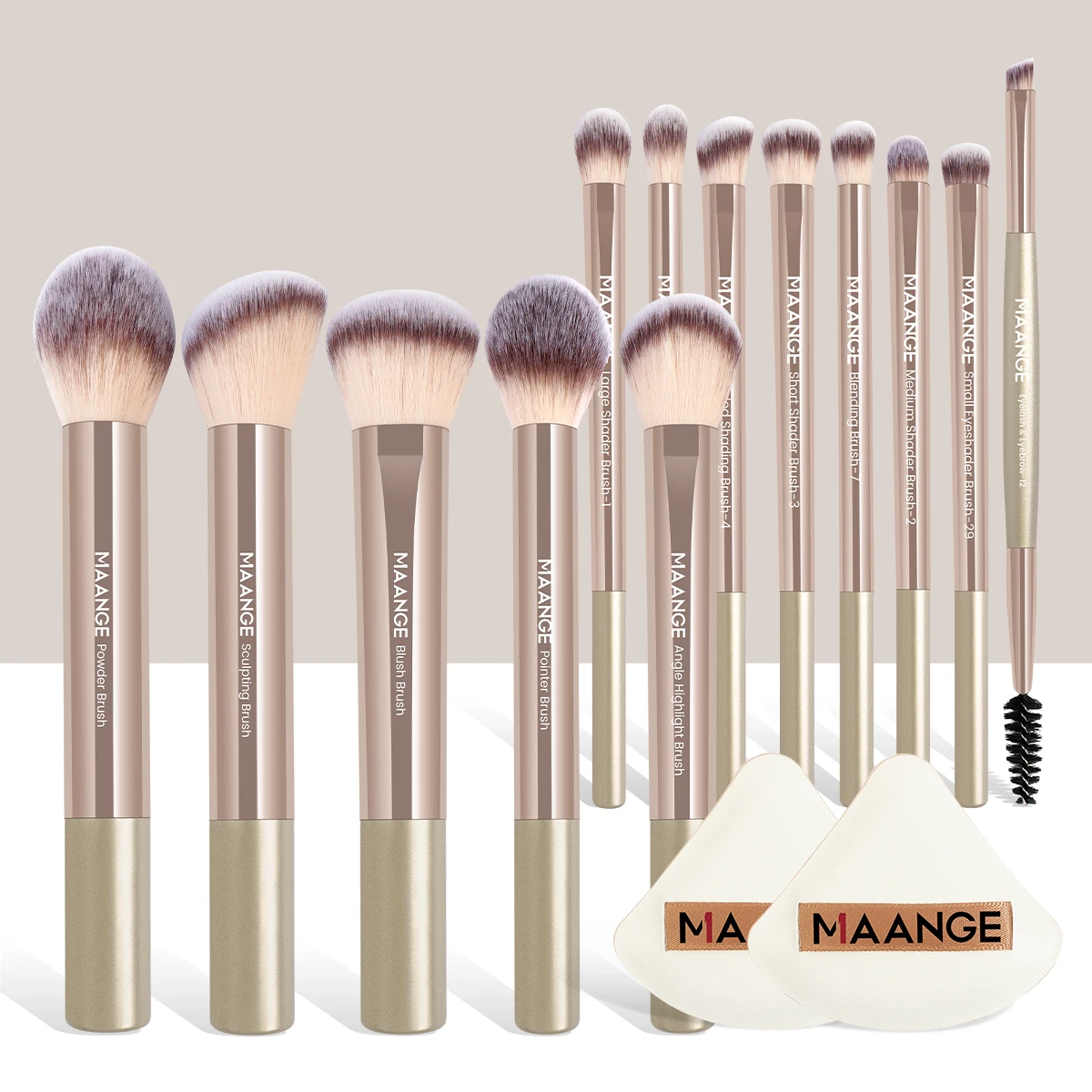 Maange 13Pcs set -Premium Synthetic Hairs Makeup Brushes Soft Gentle for Foundation Eyeshadow Powder with 2Pcs Air Cushion Puffs Kit