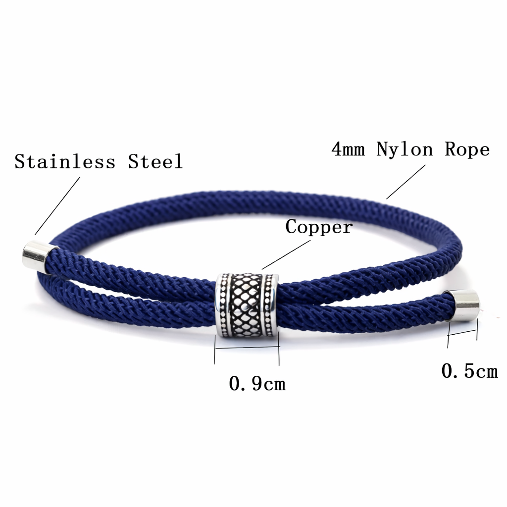 Mens classic Adjustable Nylon Cord Chain Viking Bracelet- Navy Blue