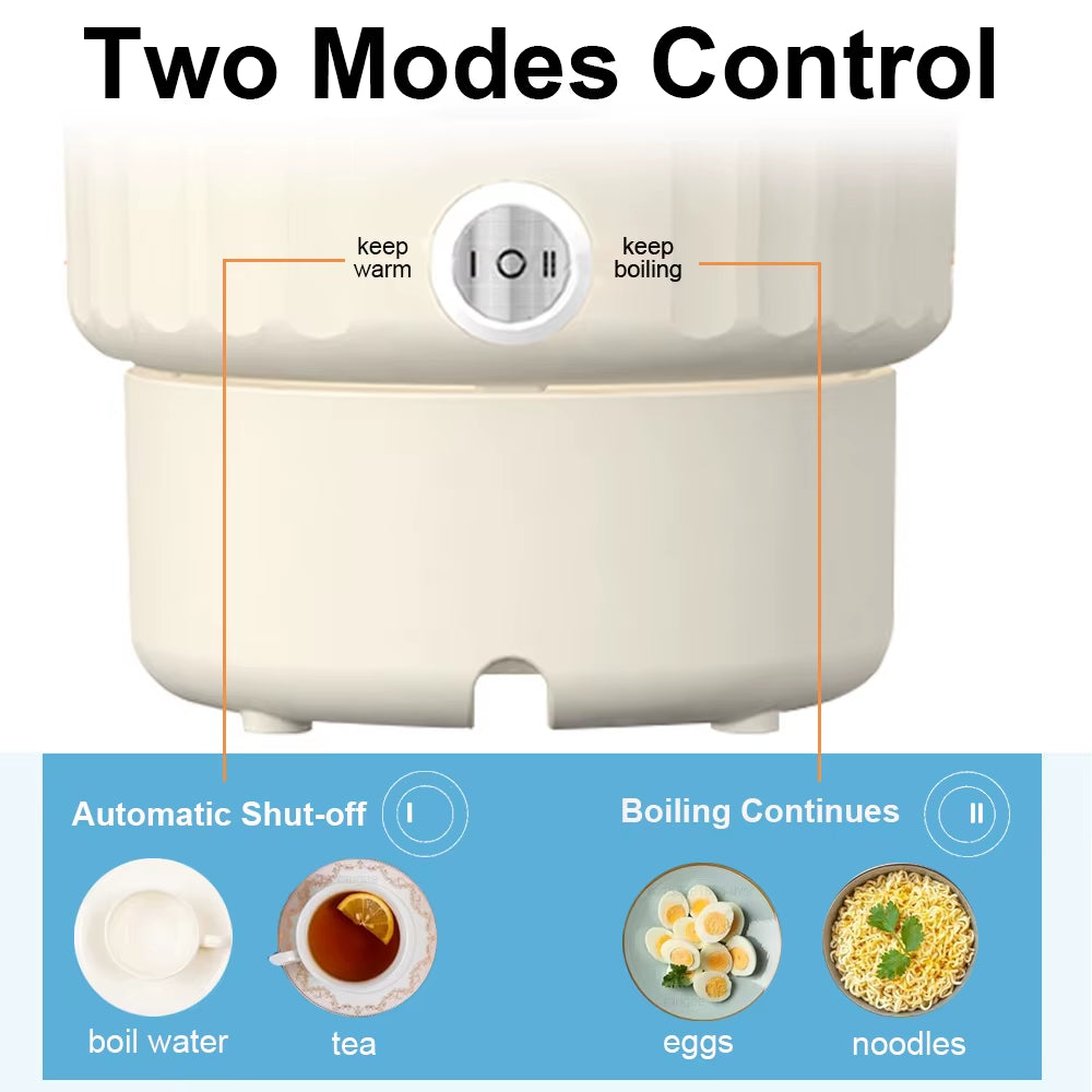 -Multi-function Use:  equipped with dual mode settings (Boil & Keep Warm and Constant Heating), which can not only boil water but also cook noodles and eggs. Its user-friendly design makes it a convenient and efficient choice for travellers.
