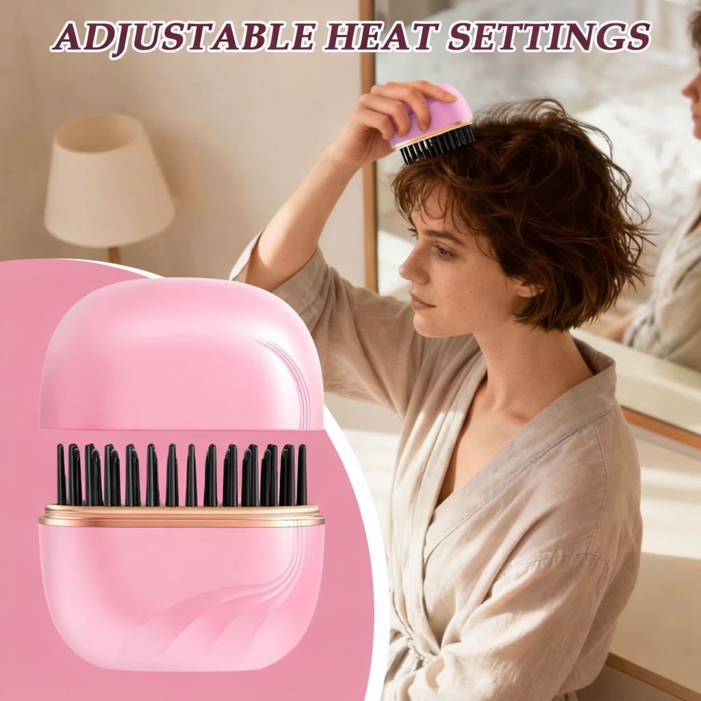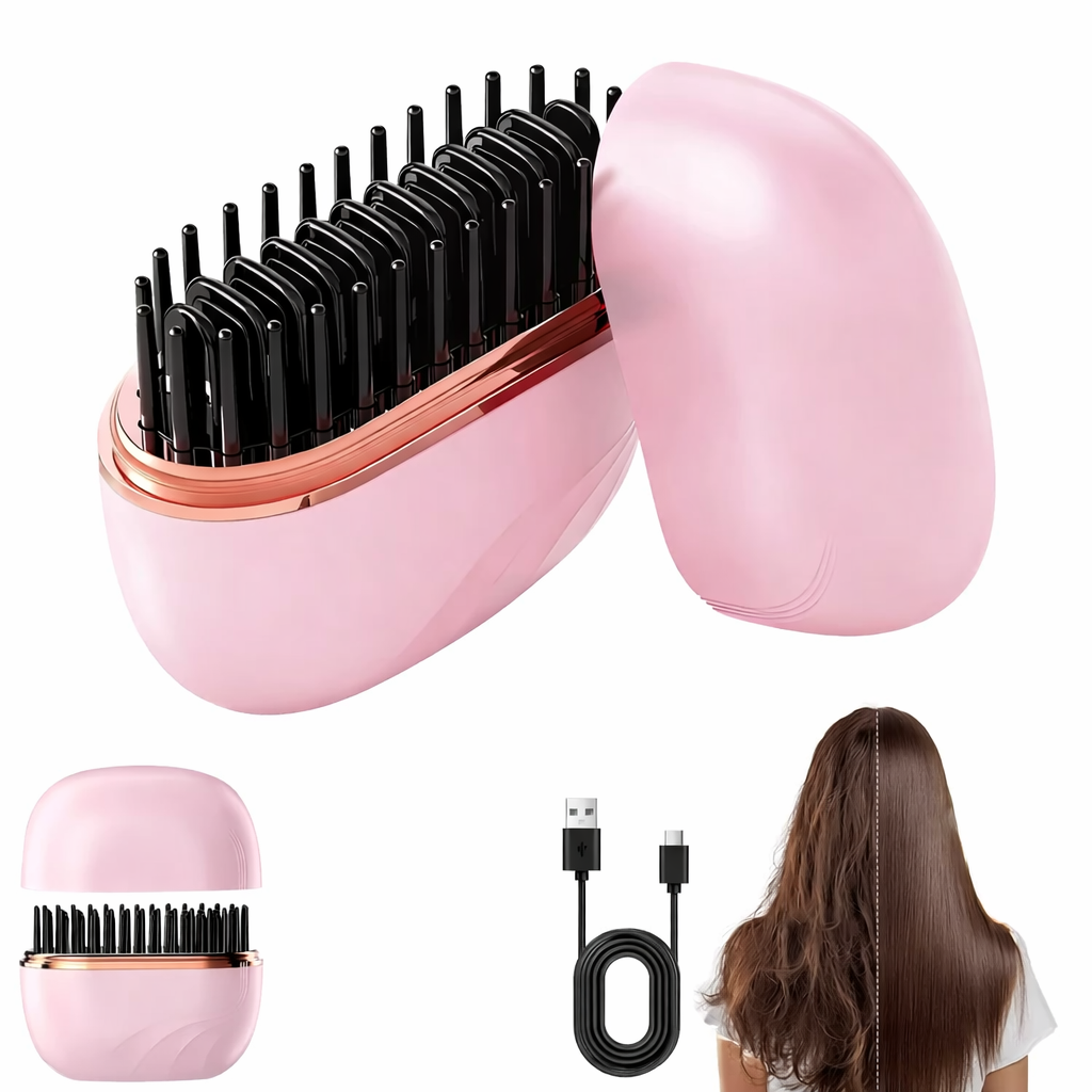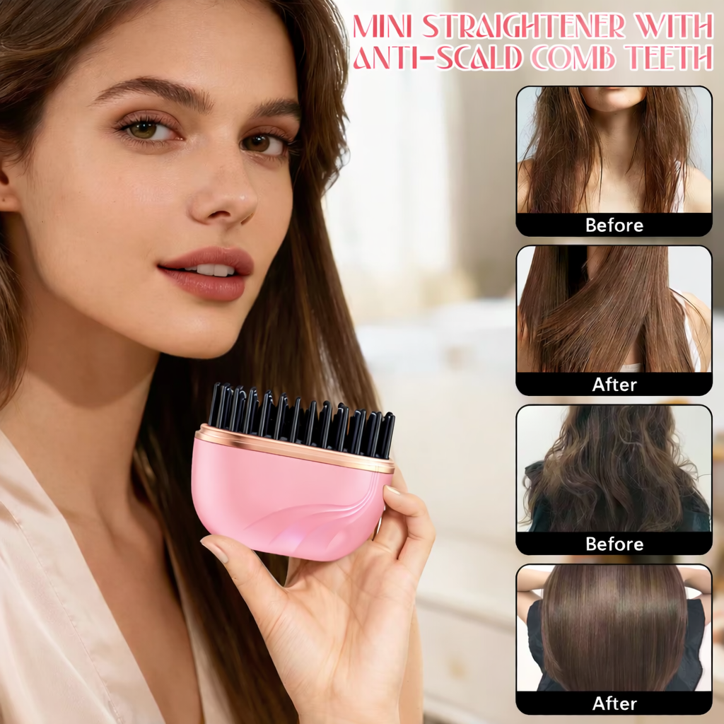 Mini Wireless Portable Rechargeable Hair Straightener Brush Anti-Scald Shell, USB Charging