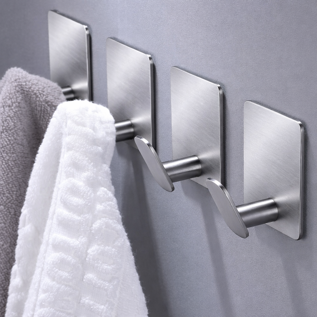 Multipurpose 8Pcs Stainless strong Adhesive Wall Hook , hanger (kitchen rugs , bathroom towels,..)