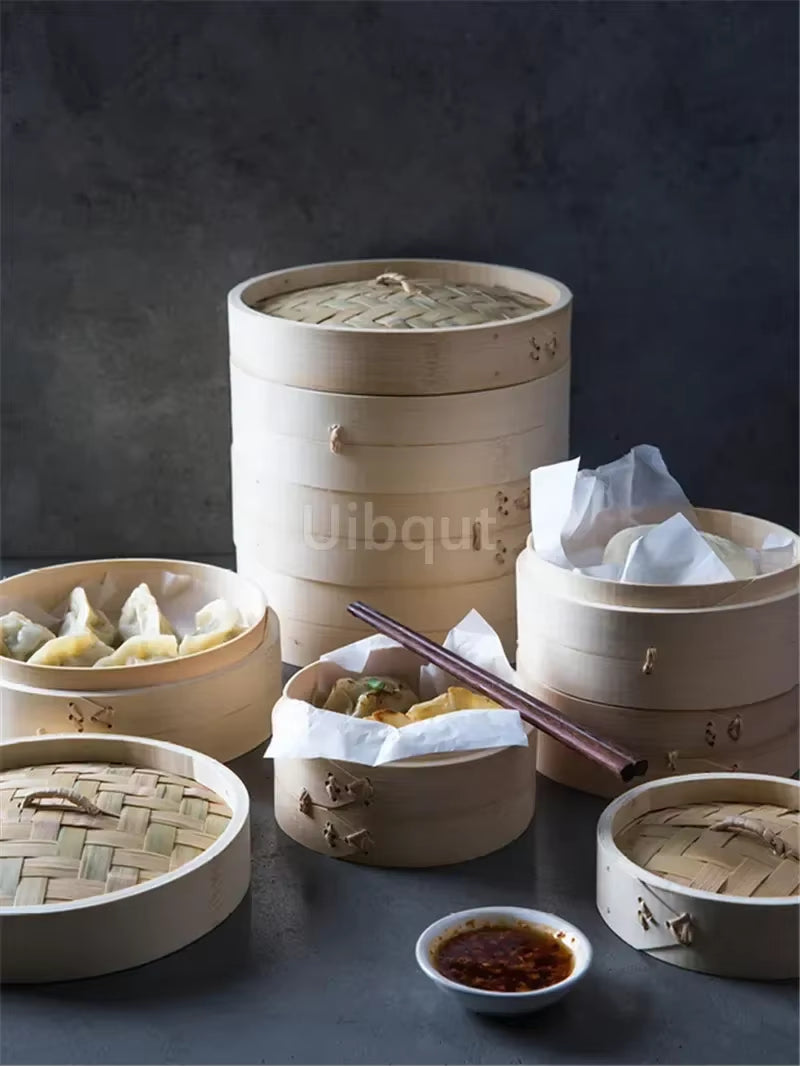 One Cage or Cover Cooking Bamboo Steamer Fish Rice Vegetable Snack Basket Set Kitchen Cooking Tools Dumpling Steamer Steam Pot