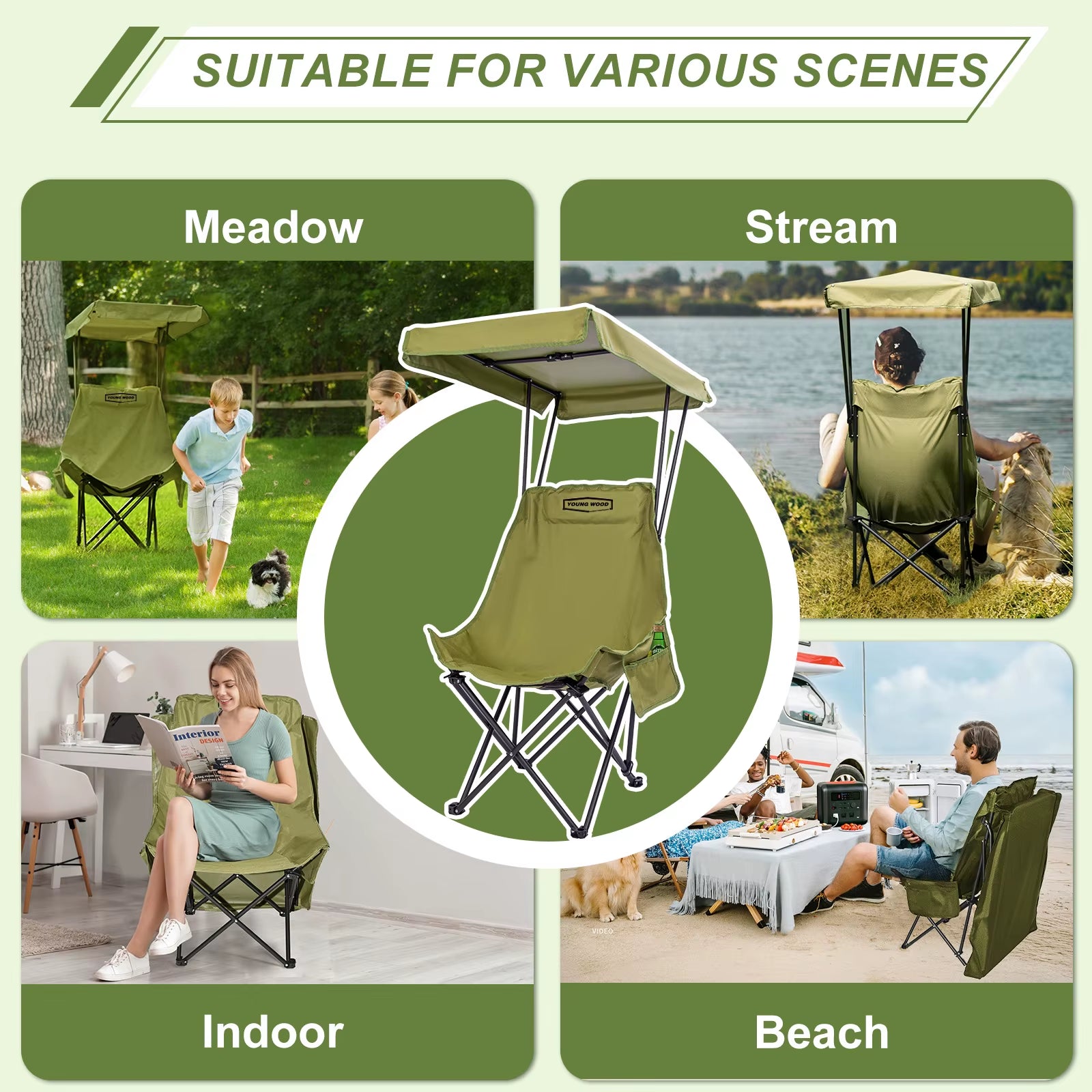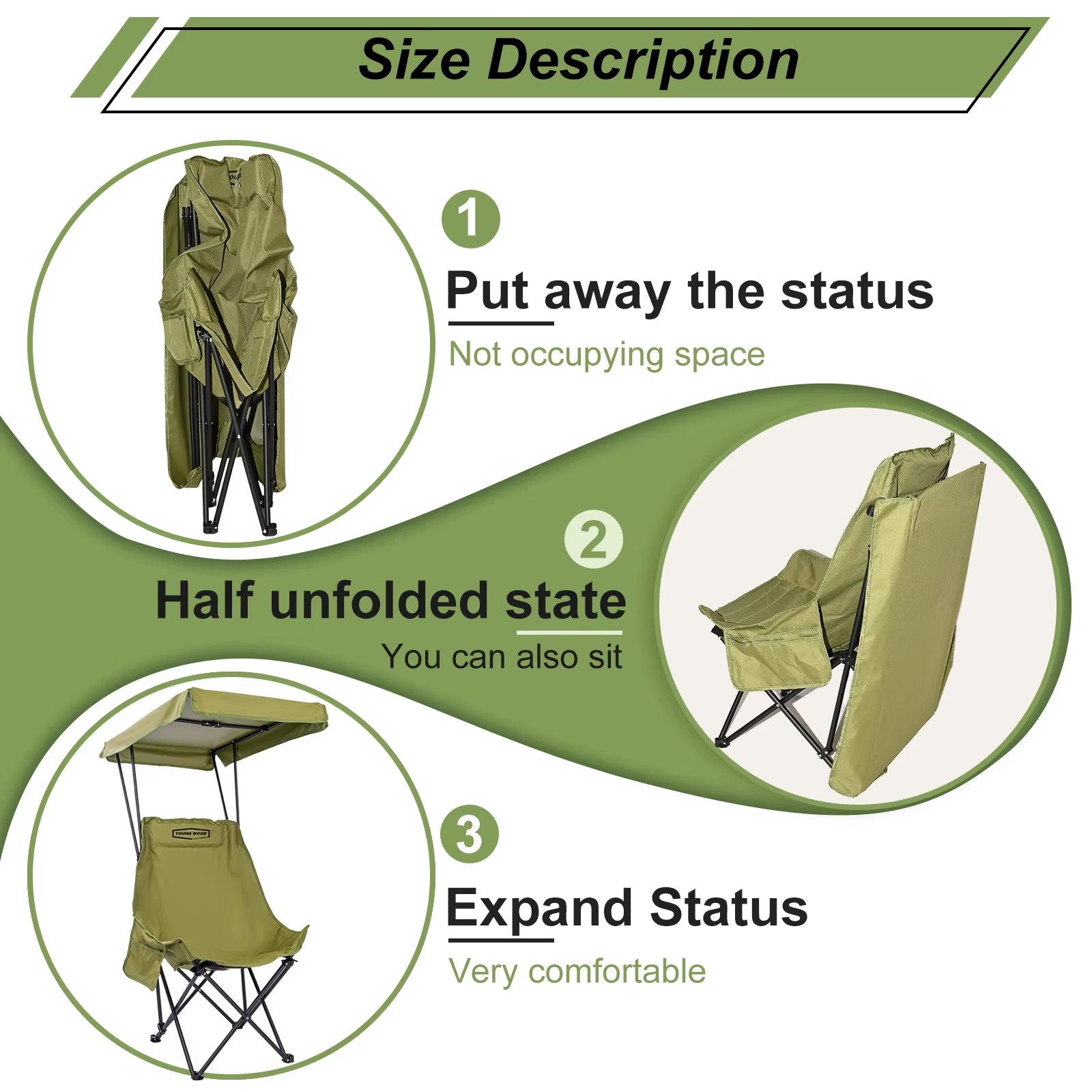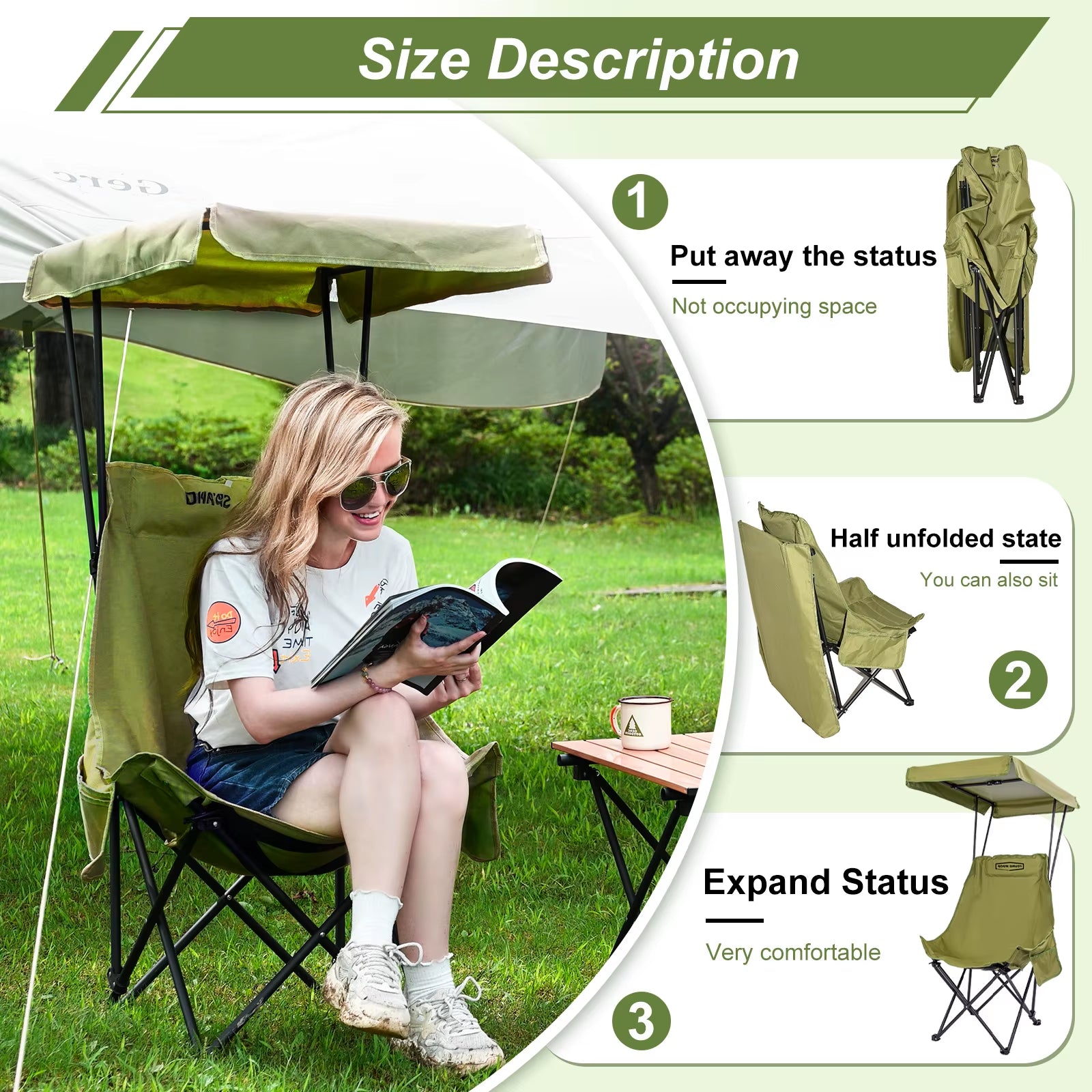 Portable Camping Chair with Shade Canopy, Foldable & Lightweight, Oversized for All, Easy to Open and Close-2pcs set