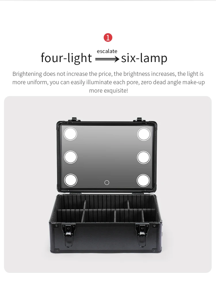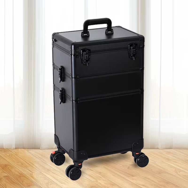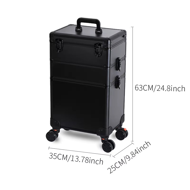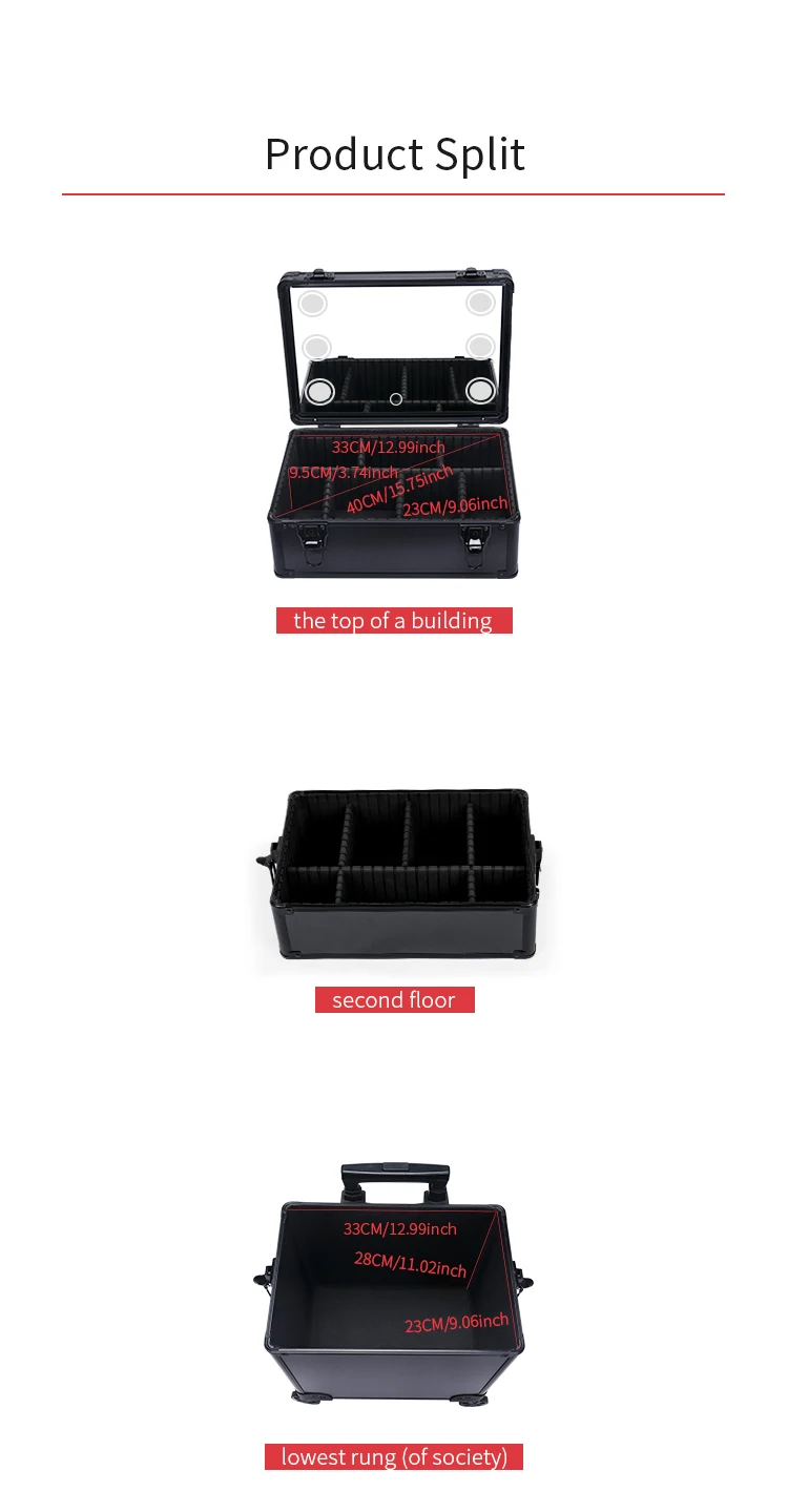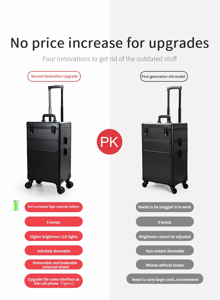 Professional Makeup Organizer Luggage with Led Lights Mriror - Large Cosmetic Trolley, Salon & Barber Case Rolling Cart for Hairstylists