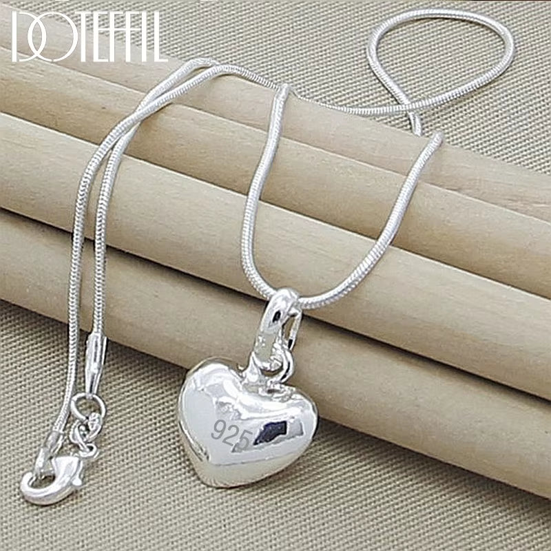 Silver Color Solid Small Heart Pendant Necklace with 45cm /17.7 Inch Snake Chain