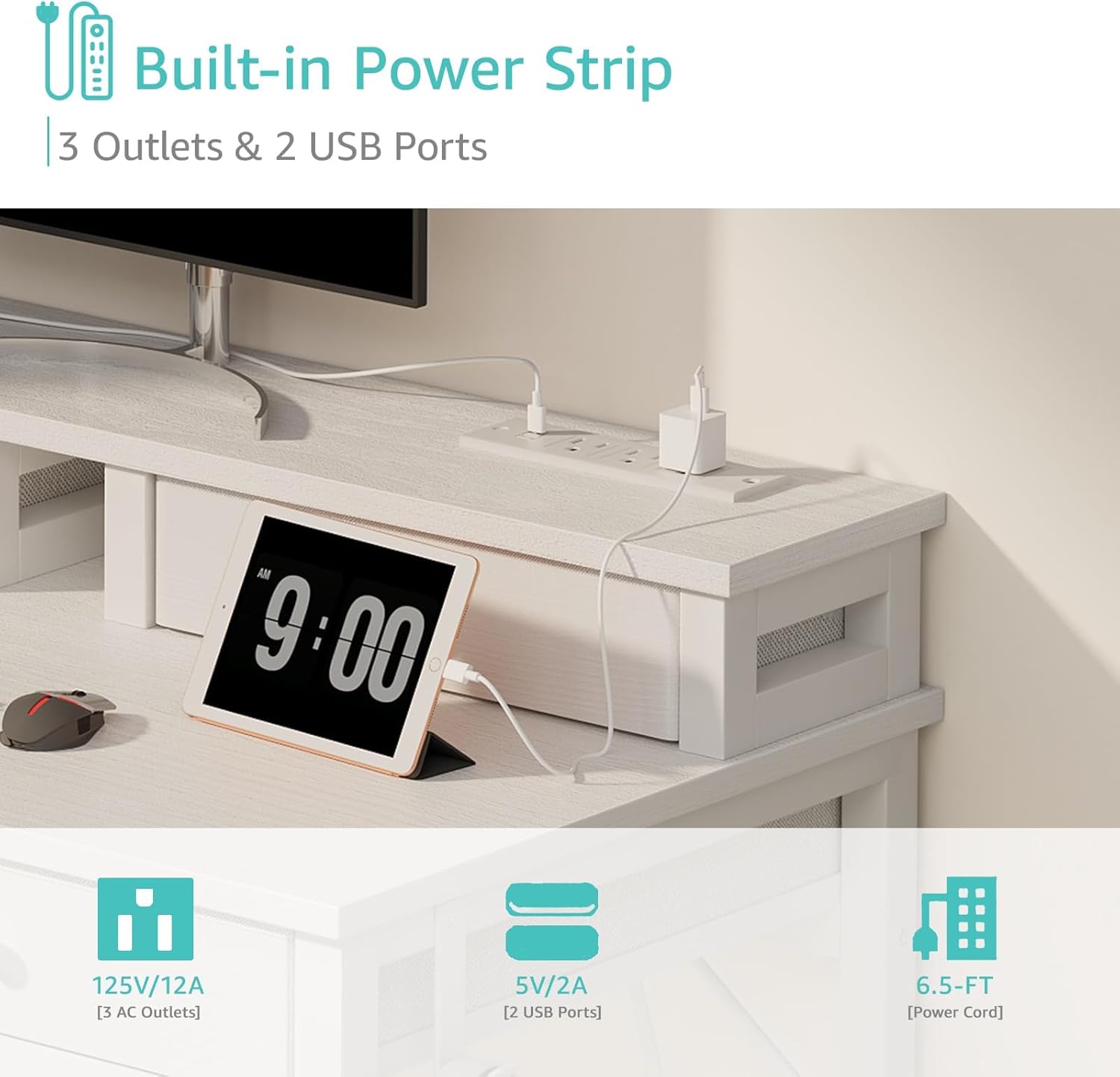• Safety Multi-functional Power Strip: The computer desk includes a built-in power strip with 3 power outlets & 2 USB charging ports for your computer, monitor, gaming gear, pad, phone and other electronic devices.