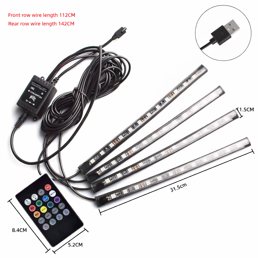 Universal Car USB color control RGB Ambient LED Strip light for Interior with remote