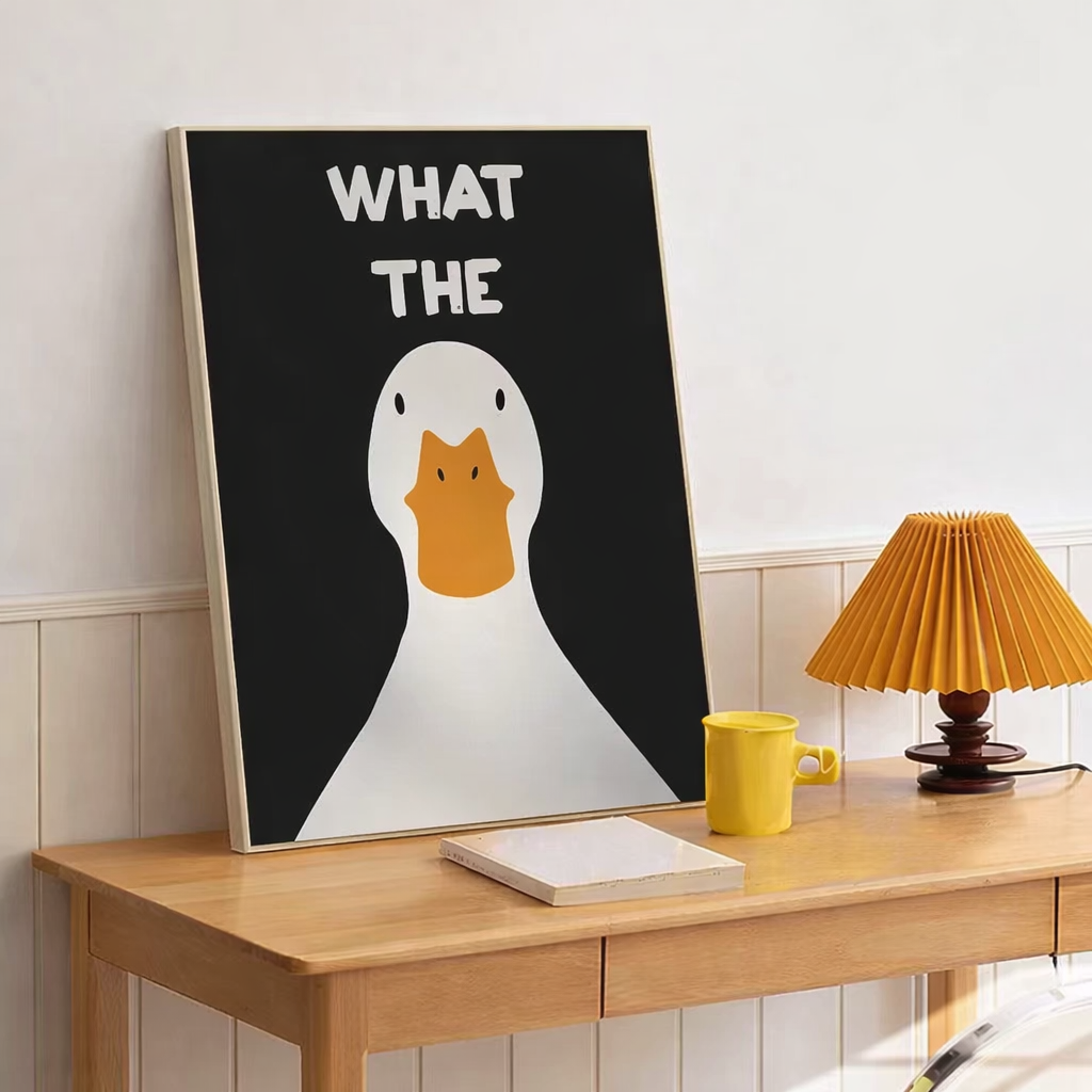 Name: "what the duck" Canvas art piece  Material: Canvas Color:As the photo shown Package: Roll in the PVC tube, Only... Read more Read more