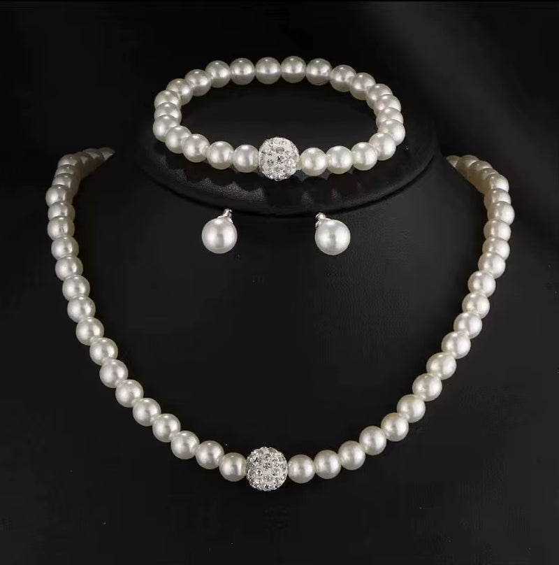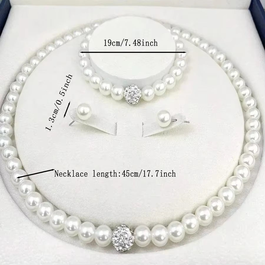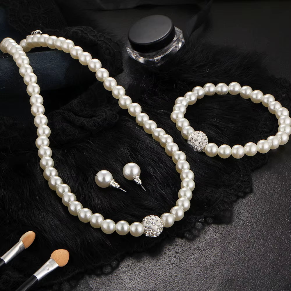Name:3 PCS set Imitation Pearl Fireball Necklace Bracelet Earring Stud Jewelry Set