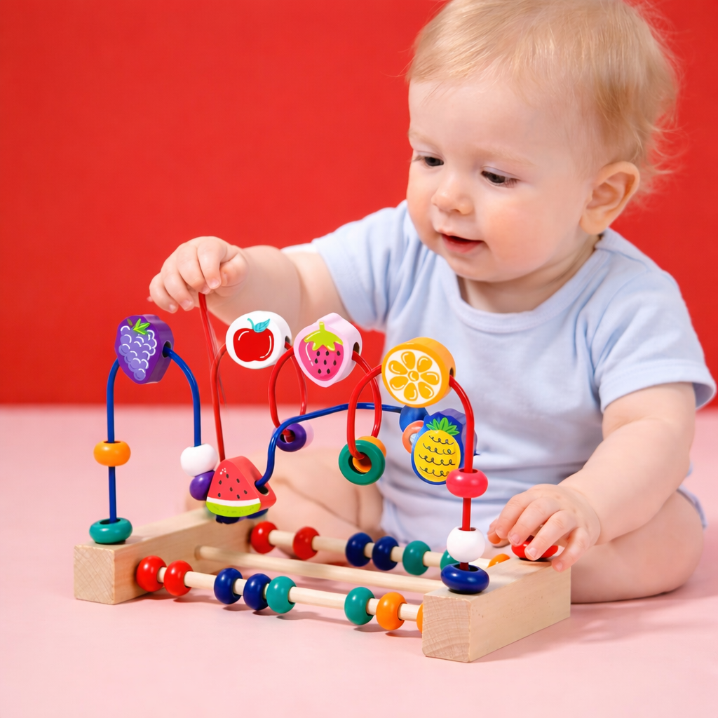 • Design: Bead maze with colorful fruit & shape elements